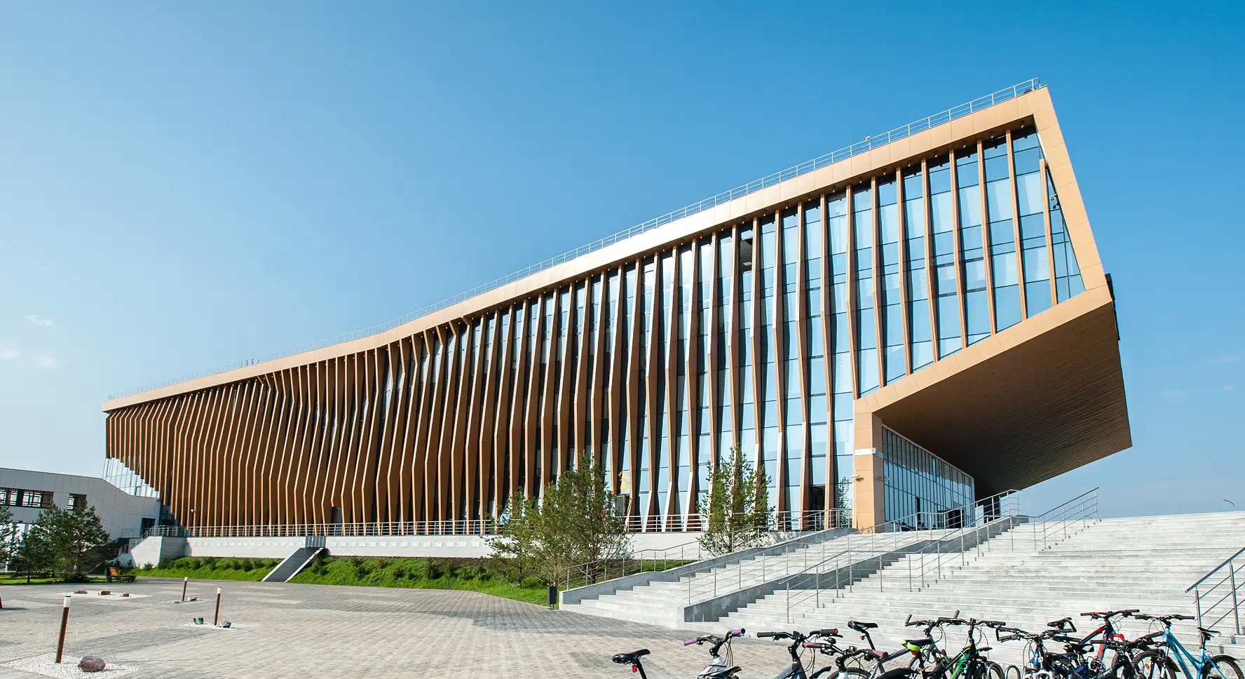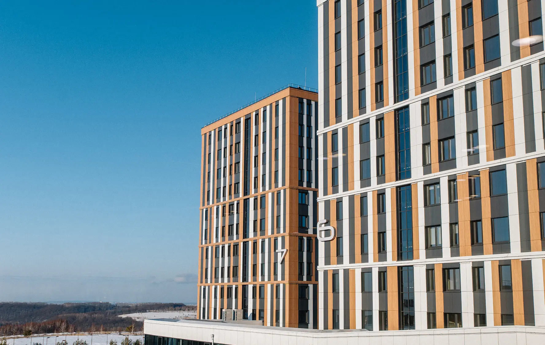 Здания жилого комплекса оборудованы по программе «Доступная среда». Все корпусы соединены между собой пешеходной галереей, которая плавно перетекает в Университет. Благодаря крытому теплому переходу передвигаться по территории удобно в любую погоду.